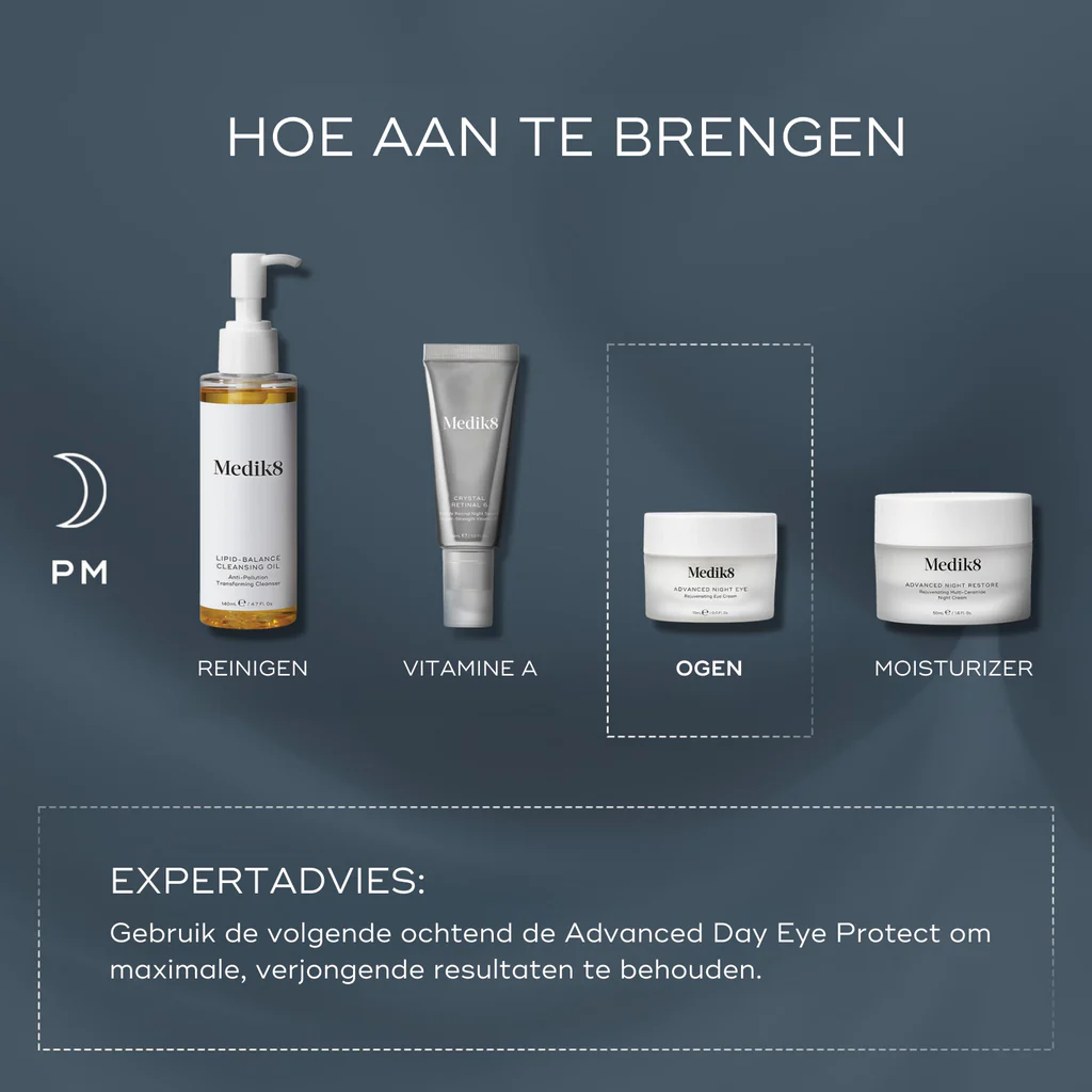 Deze rijke, maar snel absorberende crème voedt de huid onder de ogen terwijl u slaapt, voor een prachtig effect in de ochtend.