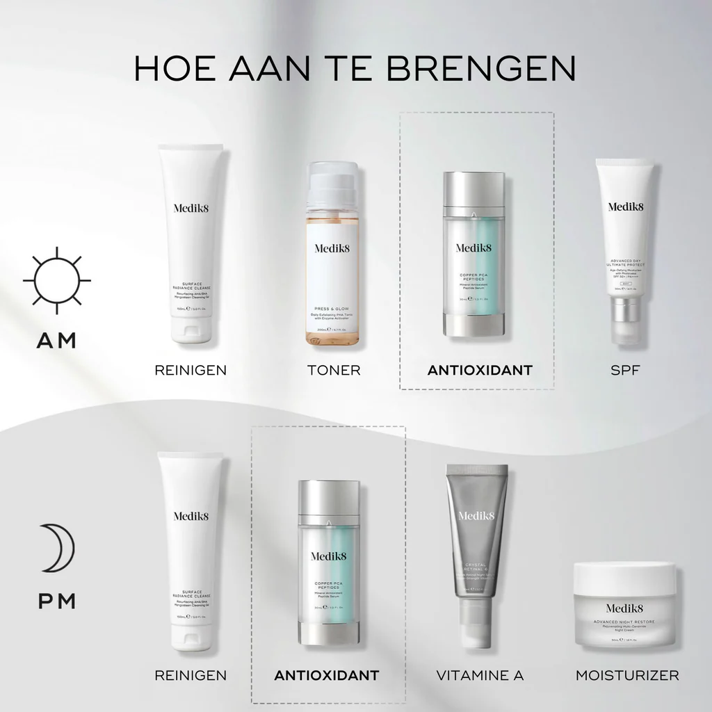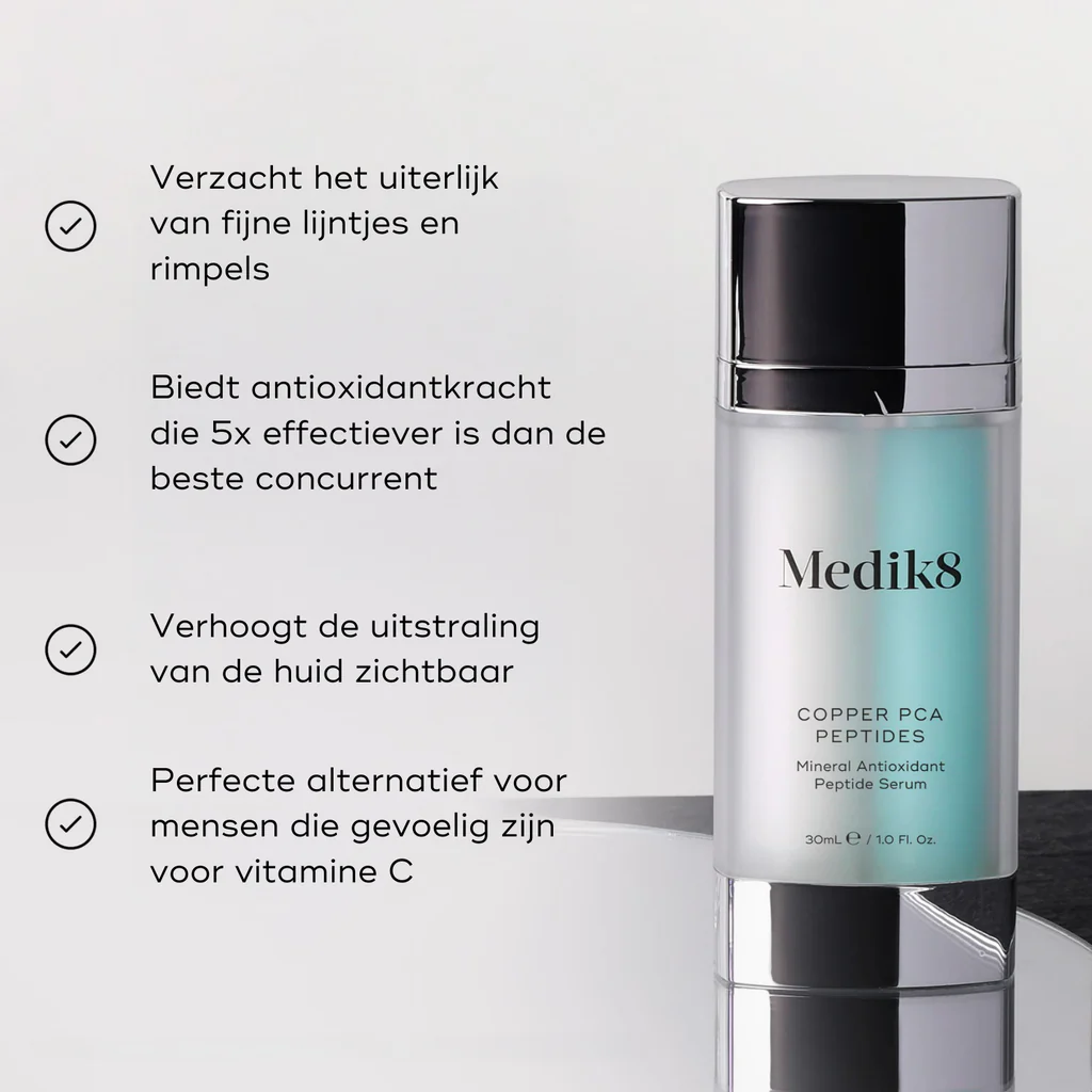 Gebruik geen Copper PCA Peptides in combinatie met vitamine C-serums, omdat ze elkaars zichtbare effecten deactiveren.