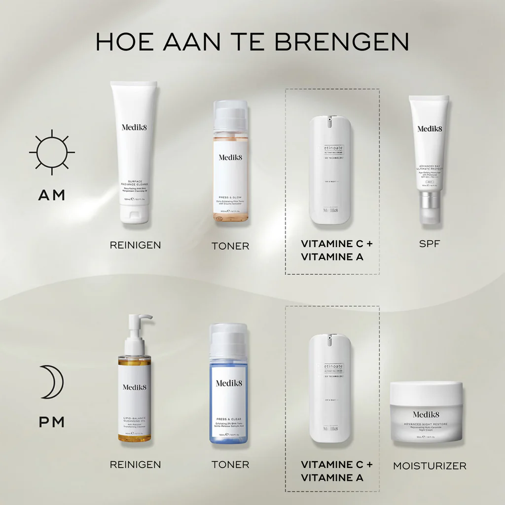 Verdeel r-Retinoate Day & Night gelijkmatig over gezicht, hals en decolleté.