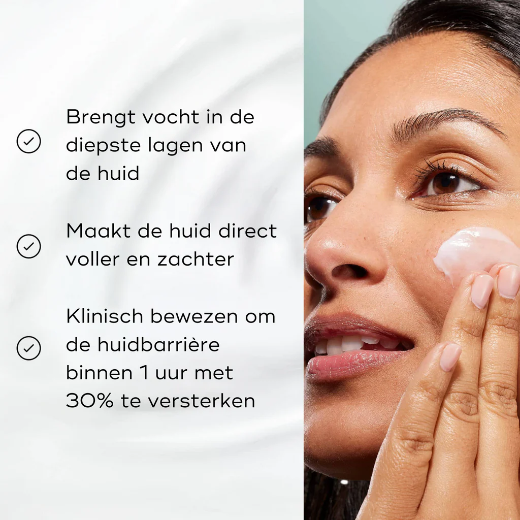 Hydrateer de diepste lagen van de huid met onze direct verstevigende vochtinbrengende crème met peptiden. Deze lichtgewicht formule is deskundig ontworpen om elk aspect van de gezondheid van de huid te ondersteunen en levert diepe, klinisch bewezen hydratatie plus essentiële ondersteuning van de huidbarrière en het microbioom. De vochtinbrengende crème verbetert ook de gezondheid van de huid en maakt de huid weer vol, in balans en zichtbaar soepel – zowel ’s ochtends als ’s avonds.
